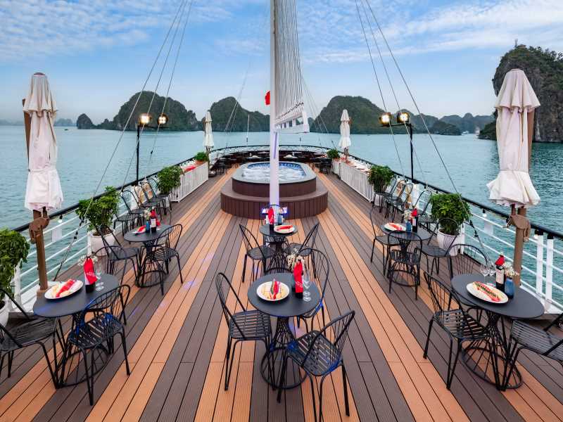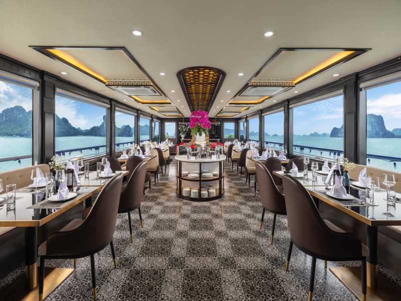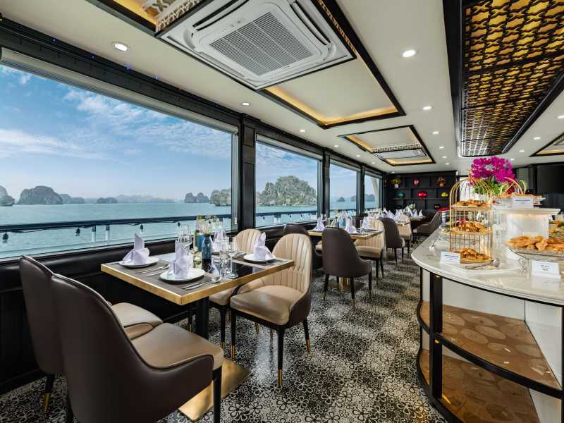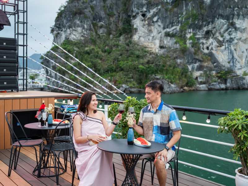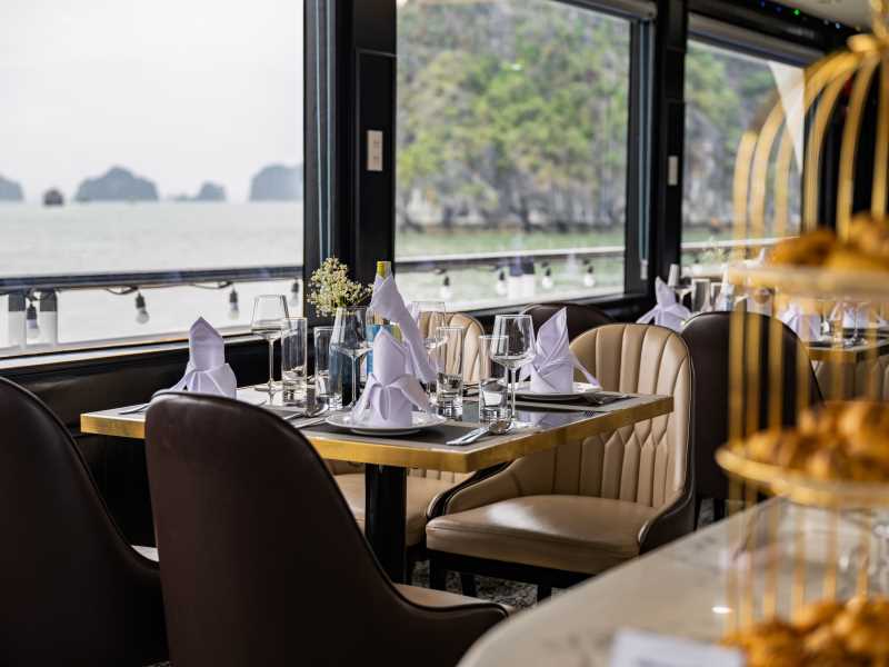 During time the boat cruising among islands and islets of magnificent Halong bay and Bai Tu Long Bay, the nice set-menu lunch will be served.