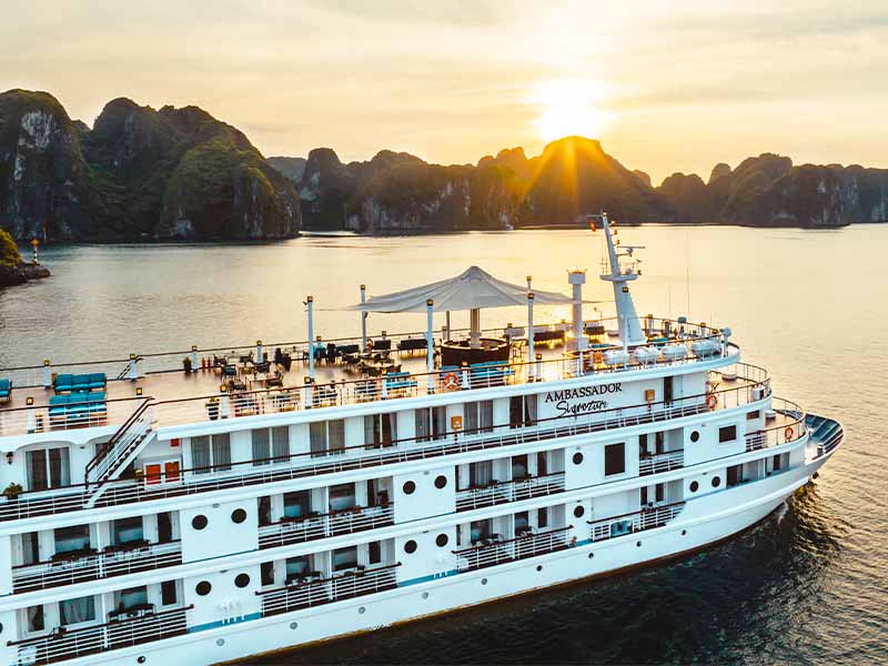 10:15 After disembarking from Ambassador Signature Cruise, passengers will be transferred to Halong International Cruise Port by speedboat.
