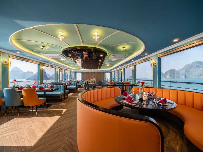 10:15: Upon arrival at Tuan Chau Harbour, you will check in, get on board, enjoy a welcome drink, and begin your journey to explore Halong Bay.