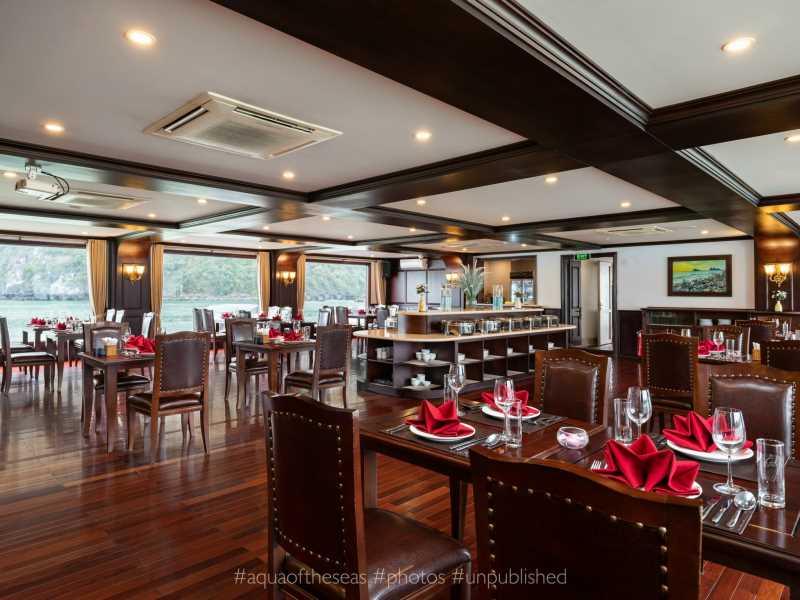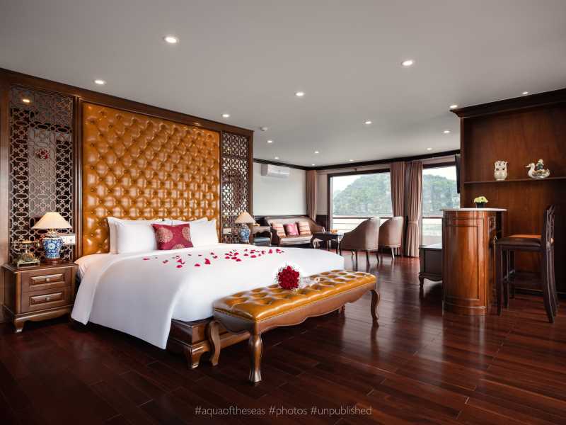 Embark on a premier cruising journey with Aqua Of The Seas Cruise, a 5-star luxury super yacht sailing through the stunning scenery of Halong Bay, Lan Ha Bay, and Cat Ba Island. AQUA OF THE SEAS CRUISE features 32 elegantly designed cabins, each offering a private balcony and ocean-view bathtub to ensure ultimate comfort. As one of the few high-end metal cruises, it boasts two fine-dining restaurants, a spacious outdoor pool, a modern gym, and a rejuvenating spa. With world-class amenities and exceptional service, we promise an unforgettable experience for every guest.