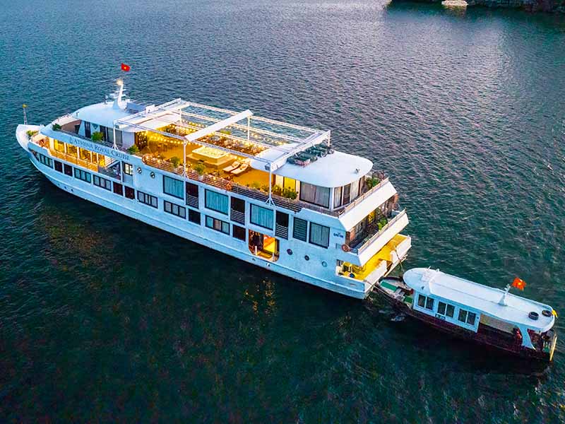 Destination: Hanoi - Athena Royal Cruise - 5 Stars - 22 Cabins - Visiting Halong Bay - Surprising Cave - Titop Island - Luon Cave