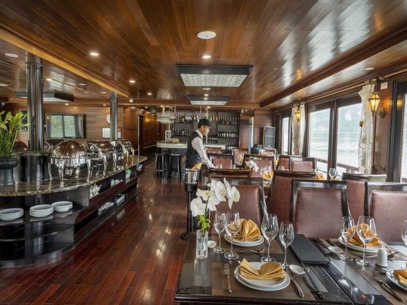 12:30. The Cruise Manager and crew member welcome you onboard with guiding information and a safety briefing. Check in your cabin before a fabulous lunch in our restaurant. During lunch time, our cruise starts to sail through the magnificent Lan Ha Bay, a geological extension of Halong Bay which is less visited, less inhabited and therefore has the extra appeal of being a more peaceful place.