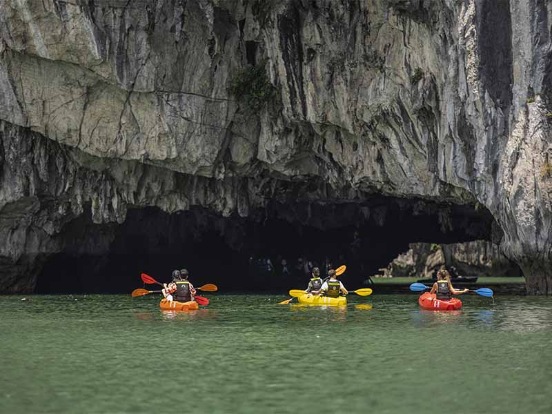 15.45 - 16.30 And then, the tender takes the guests to Tung Sau Area, free time for guests to paddle on colorful kayaks to explore the stunning landscape of Halong Bay.