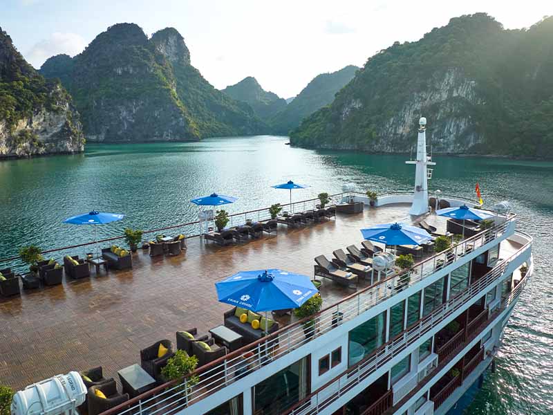 08h30: Visit Dark & Bright cave by our tender. You can do the rowing boat trip by local people. Or You can stay on the cruise for relaxing.