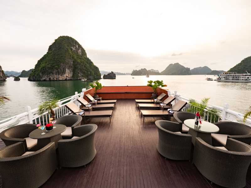 08.30-09.30 Back on the ship, you can rest in your room, sunbathe on the sundeck, take photos of Halong Bay