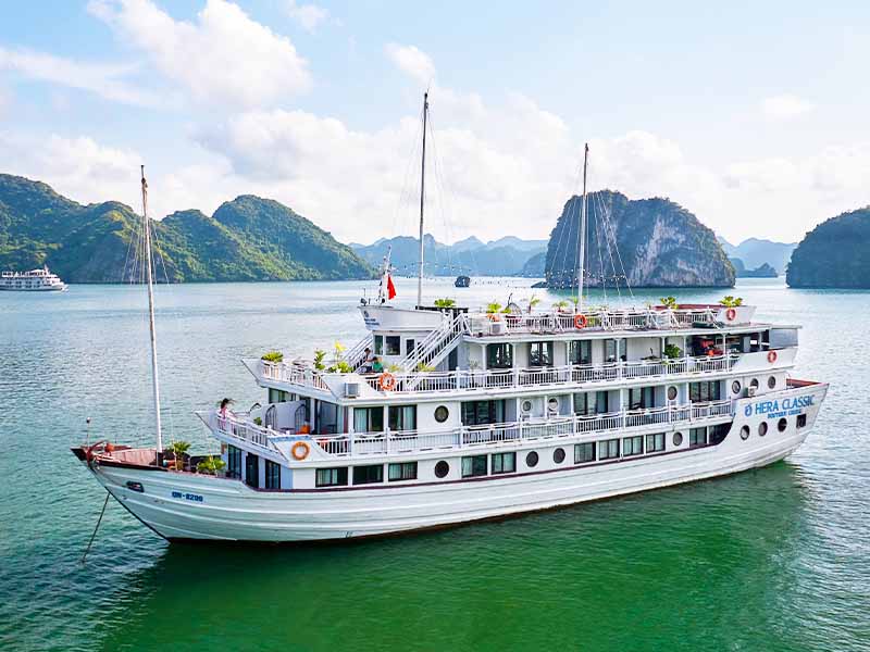 Hera Classic Boutique Cruise offers an intimate and luxurious escape with 19 beautifully appointed cabins, ideal for an overnight journey through the breathtaking landscapes of Halong Bay. Blending boutique elegance with a wellness-focused approach, Hera redefines the meaning of relaxation, providing a serene setting for rest and rejuvenation. Guests can enjoy modern amenities, indulge in gourmet dining, and soak in panoramic views of one of the world’s most stunning natural wonders. Embark on a truly unforgettable experience with HERA CLASSIC BOUTIQUE CRUISE where comfort, culture, and scenery come together in perfect harmony.