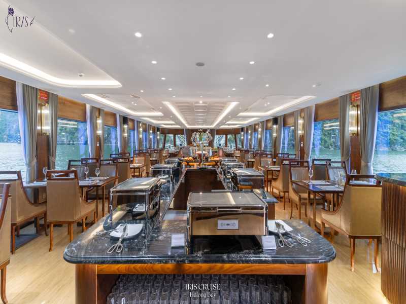 10:30 - 11:30 Welcome aboard IRIS Cruise at Halong Port and transfer to cruise by electricity carte. Boarding and enjoying welcomed drink. The cruise manager will do a short briefing of safety regulations and the trip schedule. Then enjoy the majestic scenery of hundreds of limestone mountains while cruising through Halong Bay.