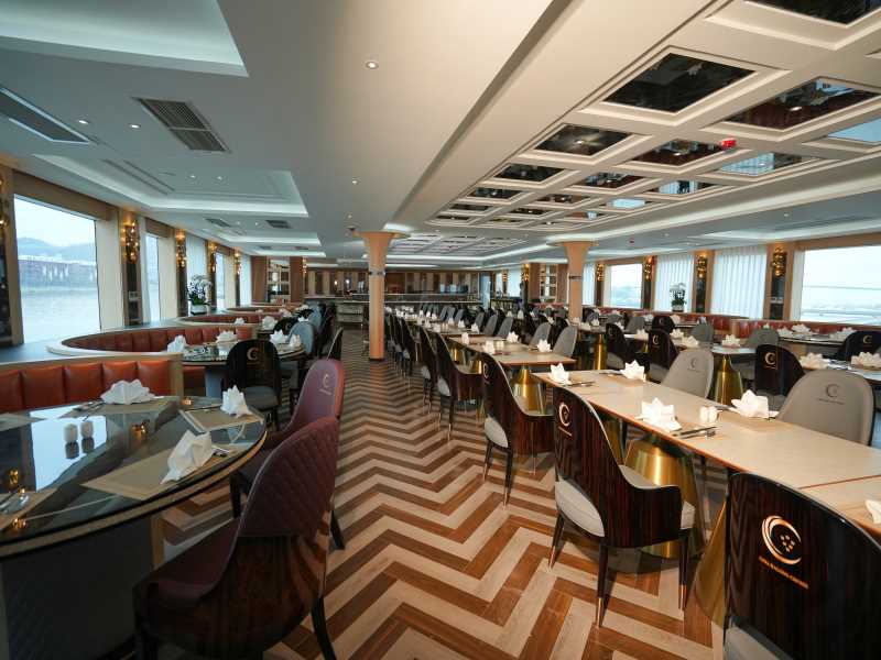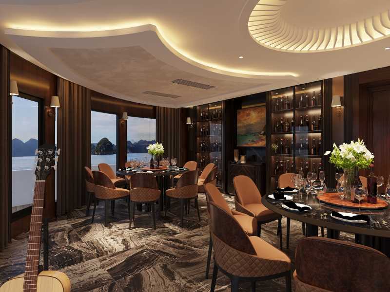 12:30 - 13:30: Enjoy a premium lunch at Luna Halong Cruise's luxurious restaurant spaces with nearly 100 premium dishes of Asian and European cuisines