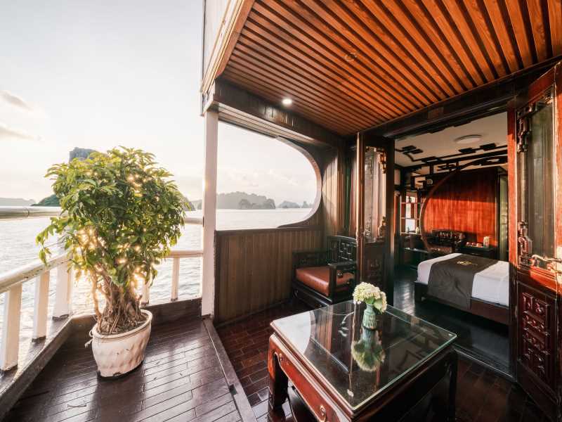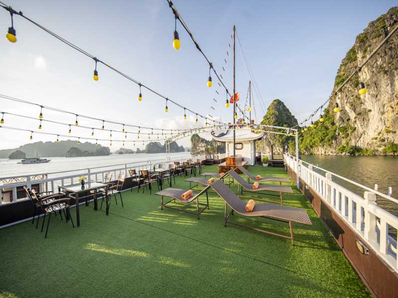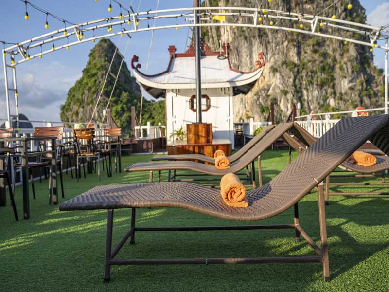 15.00: Arrival in kayaking area - Cap La Island. Enjoy canoeing amongst the karst and breathtaking nature as well as swimming and relaxing on a natural beach. You can also explore the area by taking the tender boat. Towels and waterproof bags will be provided. The cruise will stop in the anchorage area.