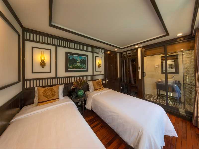 Sena Cruise is a captivating three-deck vessel, elegantly dressed in white, making a striking impression as it glides through the bay. Inside, the cruise seamlessly blends traditional Vietnamese charm with the timeless sophistication of French design, creating a regal and inviting ambiance. This harmonious fusion of cultures makes SENA CRUISE a perfect choice for travelers seeking both elegance and authenticity. With 16 thoughtfully designed cabins across various room types, each equipped with modern amenities, guests are guaranteed a comfortable and restful experience throughout their journey.