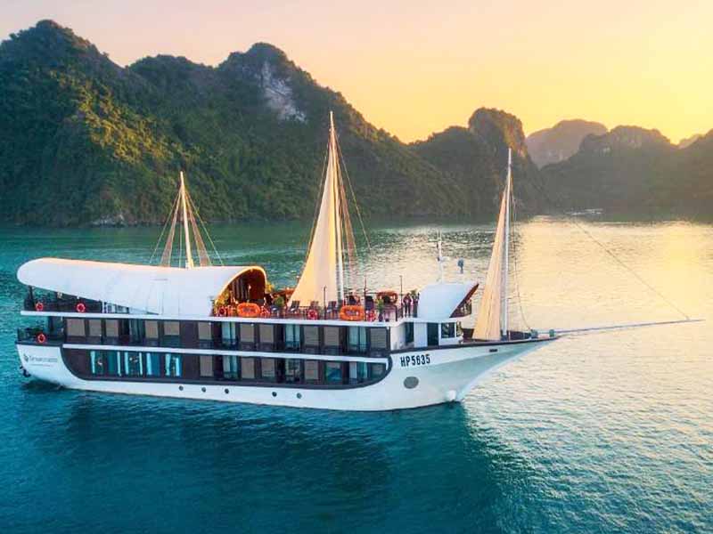 During the time well prepared Set menu lunch is served, Sena Cruise - Luxury Boutique Cruise slowly navigates emerald water and thousands of Karst Mountains towards the Harbor.