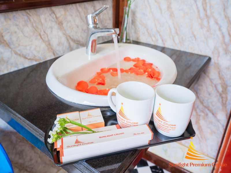7:00: Pick-up at hotels if located in the Hanoi Old Quarter by shuttle bus departing to Lan Ha Bay with stopovers for refreshing en route.11:30: Arrive Beo Harbor, transfer by tender to Sunlight Premium cruise or Sunlight Boutique cruise, and enjoy welcome drinks, receive cruise briefing, safety instructions then check in to your cabin